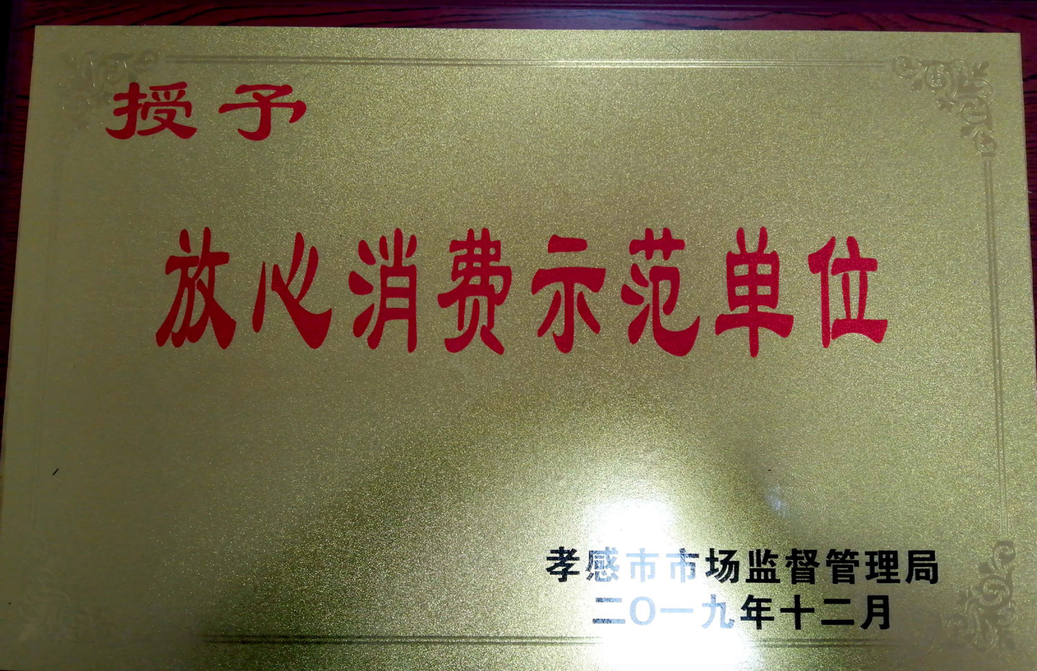 公司被市場監(jiān)督管理局授予“放心消費示范單位”稱號