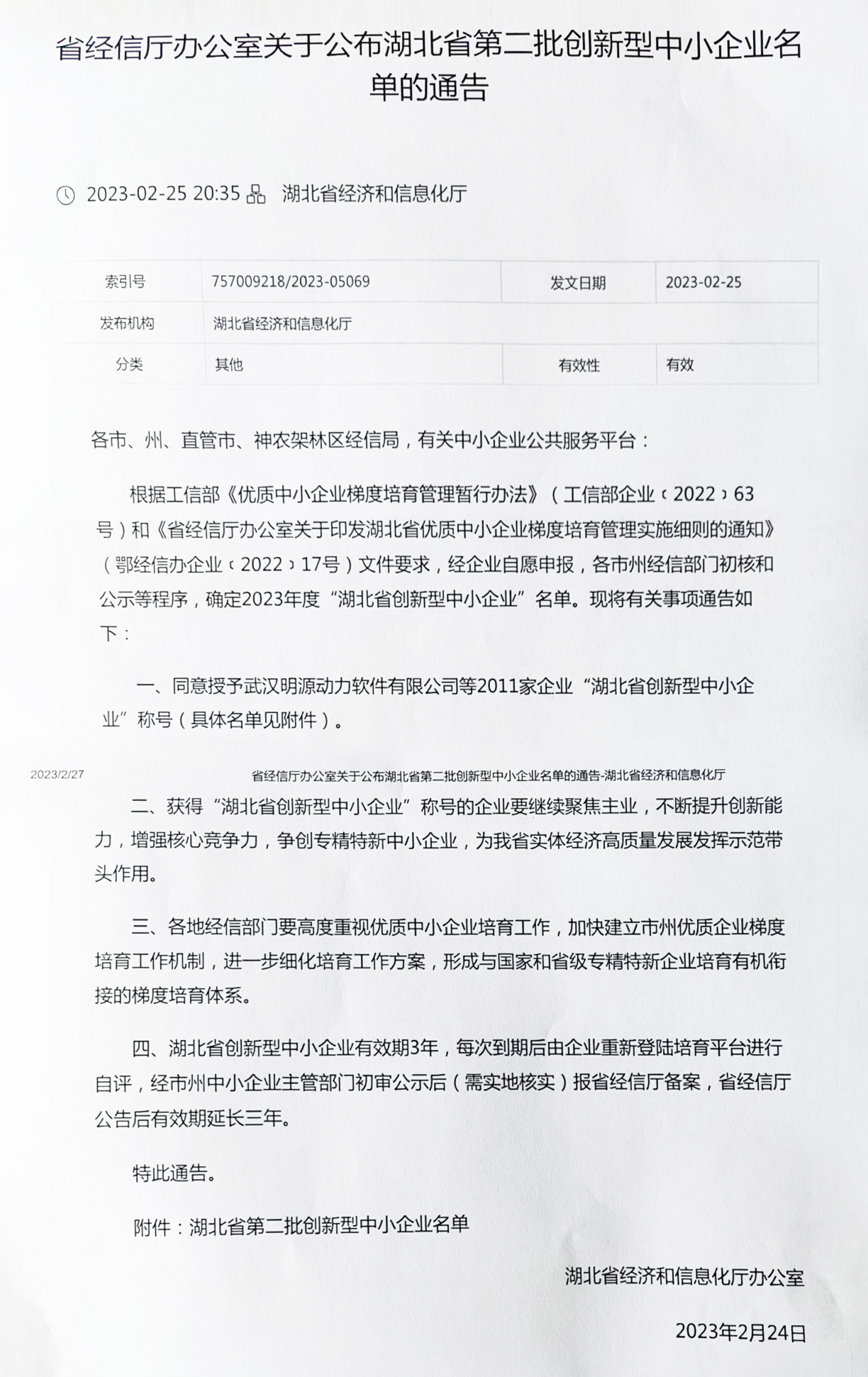 我司獲“湖北省創(chuàng)新型中小企業(yè)”稱號